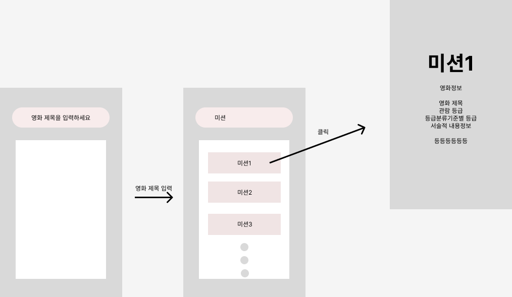 예를 들면 '미션'을 검색한다면 영화 제목에 '미션'이 들어간 영화들이 검색 결과로 올라오고, 그 중에서 사용자가 찾던 영화를 클릭하면 그 영화의 세부 정보를 제공하도록 만들 것이다.