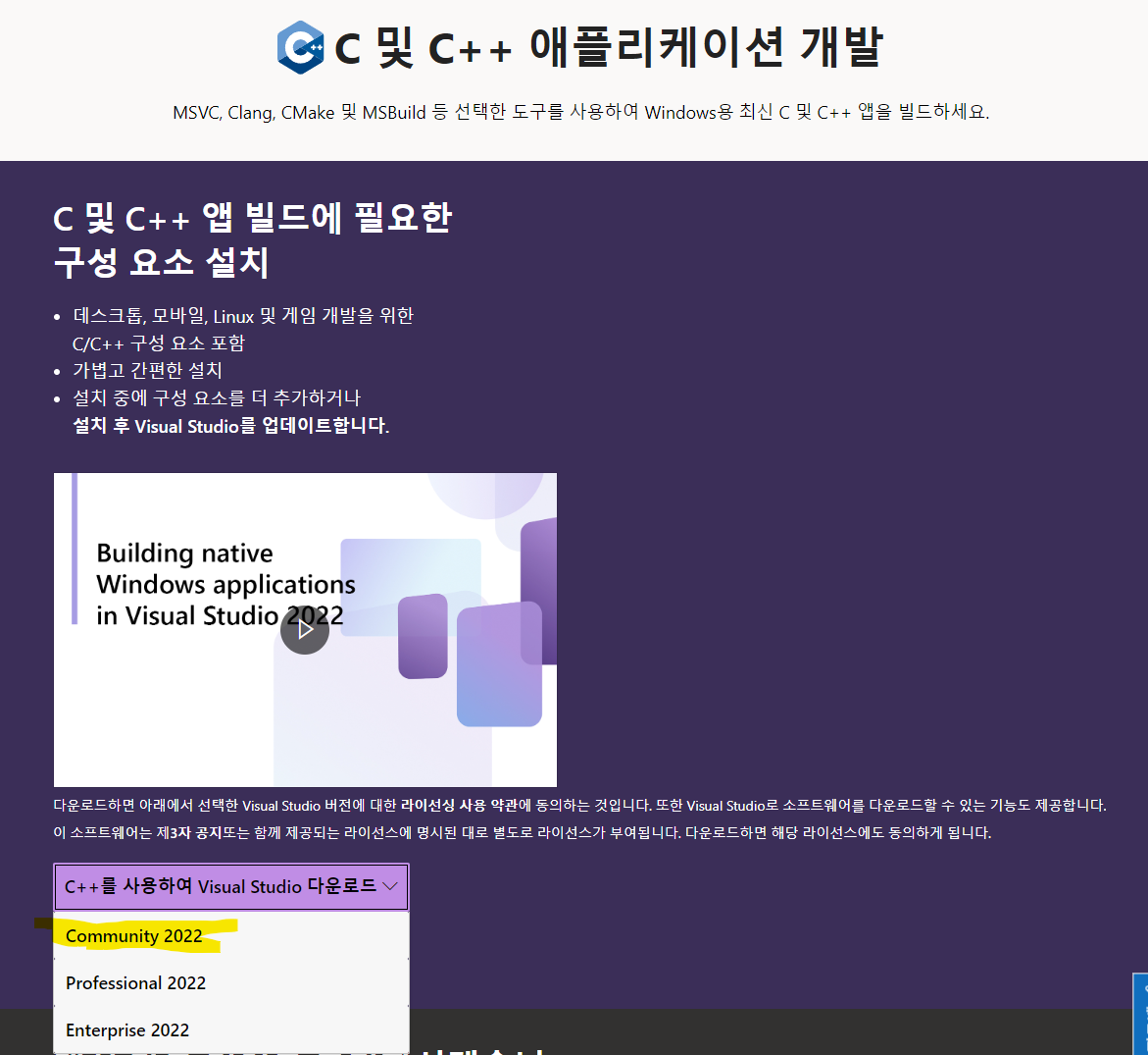 https://visualstudio.microsoft.com/ko/vs/features/cplusplus/